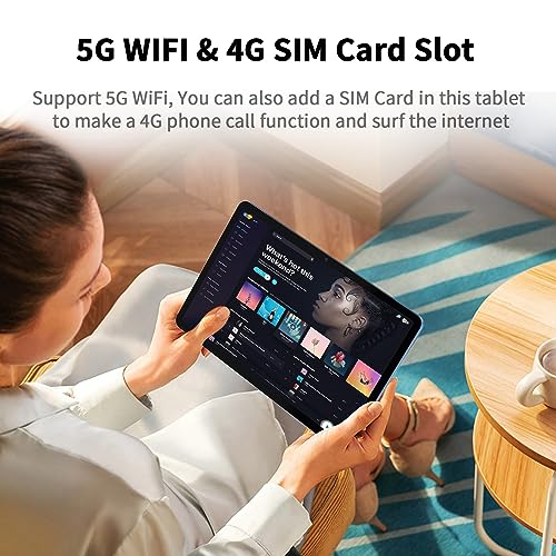 • ★4G Phone Tablet with Long Battery Life: This 8000mAh Li-Polymer battery tablet has a highly efficient 12NM CPU and 5G WI-FI to greatly enhance your experience, so you can enjoy up to 12 hours of mixed reading, watching TV shows, games and more. Plus the tablet can be add a SIM card sp that it has 4G calling capabilities and network for simultaneous sharing while entertaining, making it perfect for casual fun and video entertainment with friends.