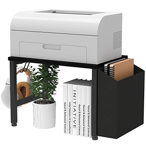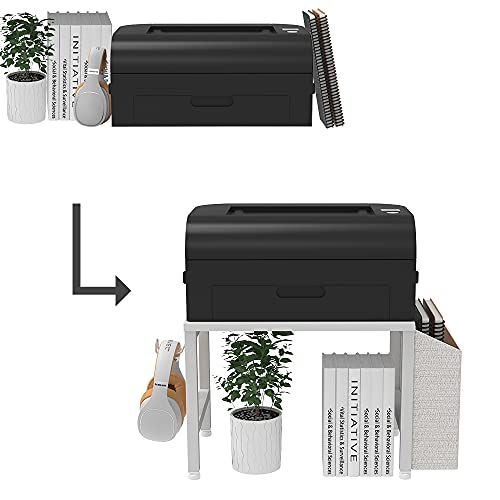 - 【SPACE SAVING】The printer stand can be used as a desktop shelf or as an under desk organizer, and also provide an additional Storage Bag and Iron Hook. Storage bag will help organize your working space at home or office more efficiently, the iron hook allows you to hang up headphones or other useful gadgets.
