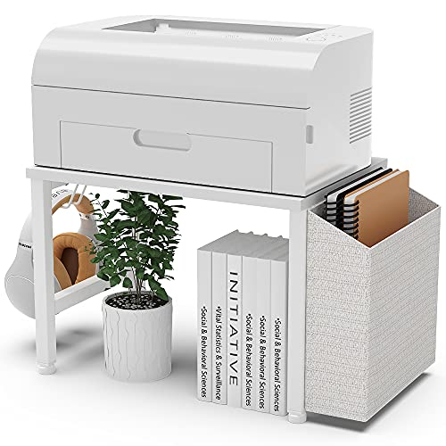 - 【USER-FRIENDLY, ASSEMBLE EASILY & MODERN WHITE APPEARANCE】Height-adjustable anti-skid pads protect your table and floor, and the waterproof surface makes cleaning easier. The printer stand is easy to assemble with the instruction included.