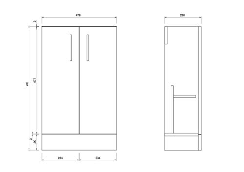 - Dimensions - Height: 791mm, Width: 475mm, Depth: 230mm