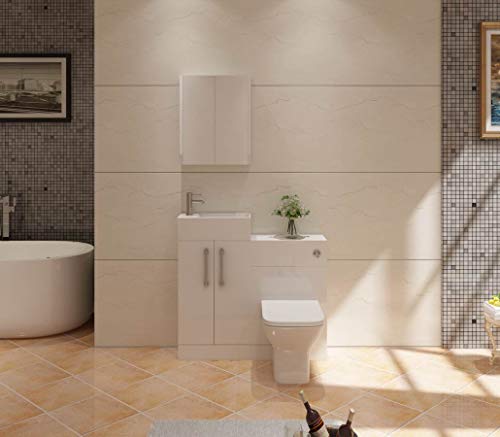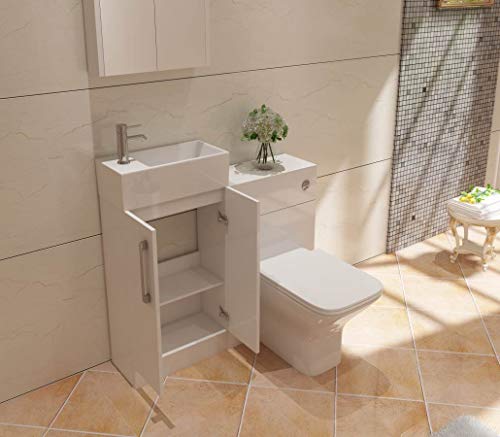 - ACCOMPLISHED DESIGN - Built to last from solid MDF, the vanity cabinet comes in a high gloss white finish, includes soft closing doors, an integrated ceramic wash basin and sturdy chrome finish handles.