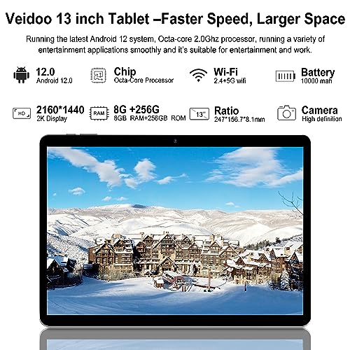 - [13 pouces + resolution 2K Full Vision + Quatre Haut - parleurs] la tablet Veidoo 13 pouces dispose d'un ecran 2160x1440 intégré qui vous permet d'obtenir une résolution aisante sous tous les angles, ajustant automatiquement la luminositis. de l'éé é Cran pour une meilleure expérience visuelle. Sur les tablets Android, nous sommes à votre disposition avec des vidéos HD et quatre Haut - parleurs pour que vous puissiez regarder le film vous - même.