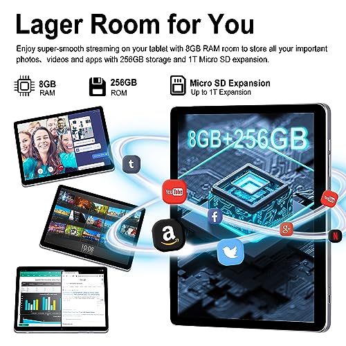 - [8 Go de RAM + 256 Go de ROM +Processeur Octa - Core] avec 8 Go de Ram et 256 Go de stockage haute vitesse, vous pouvez stocker plus de fichiers,d'ebooks et de jeux qu'auparavant.avec une card SD, l'espace de stockage peut treê étendu à 2 tonnes. Le processeur octa - Core de la tablette et son puissant chipset prennent en charge des fréquences CPU allant jusqu'à 2.0 GHz. Regardez en direct en 4K, participez à des réunions et des cours en ligne et profitez d'une expérience multitâche fluide.