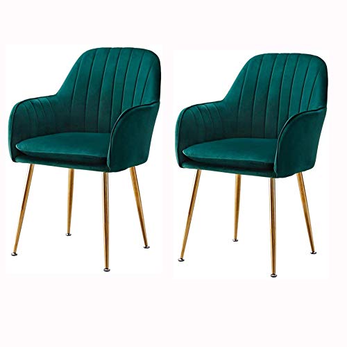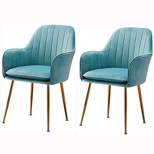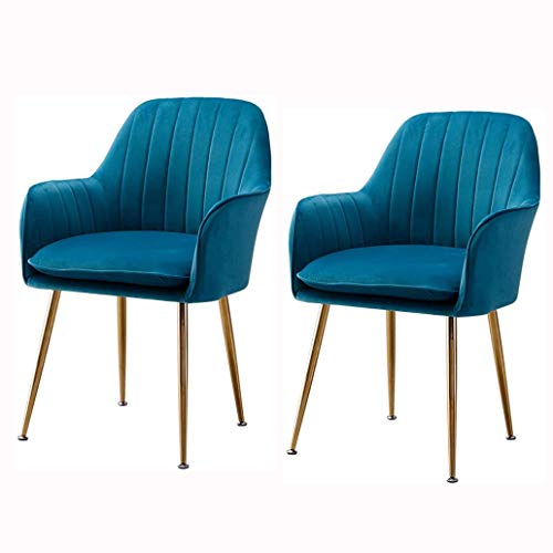 Home Dining Room Furniture Velvet Dining Chairs Set Of 2 Metal Legs Armchair Flannelette Upholstered Lounge Sofa Chair for Leisure/Office/Reception/Living Room/Kitchen (Col