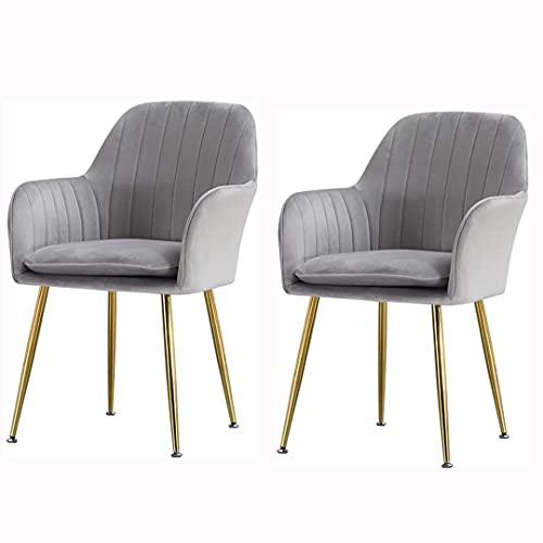 Velvet Dining Chairs Set Of 2 Metal Legs Armchair Flannelette Upholstered Lounge Sofa Chair for Leisure/Office/Reception/Living Room/Kitchen (Col