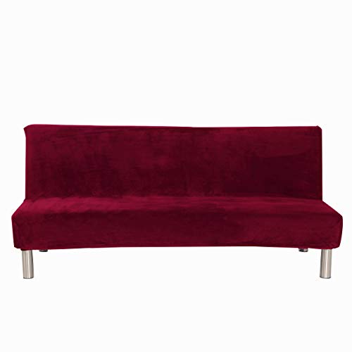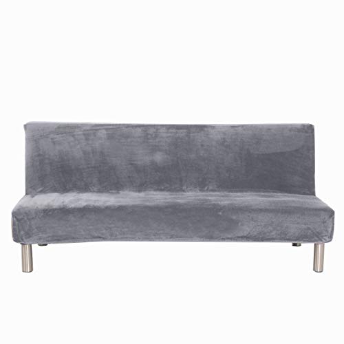 Velvet Plush Armless Sofa Slipcover,3 Seater Winter Thicker Stretch Sofa Bed Covers Furniture Protector Solid color Anti-slip Stretch Couch Cover
