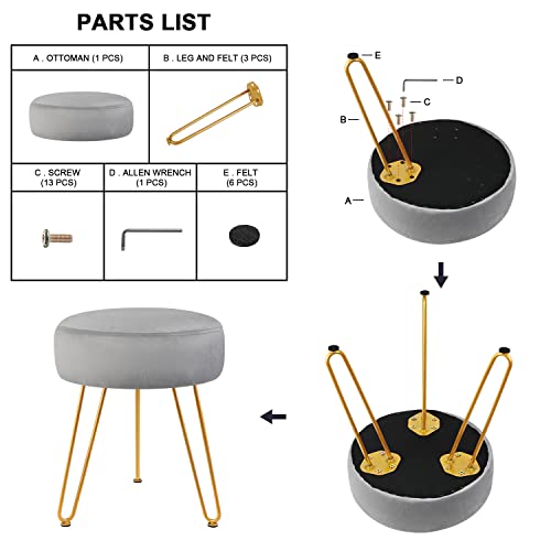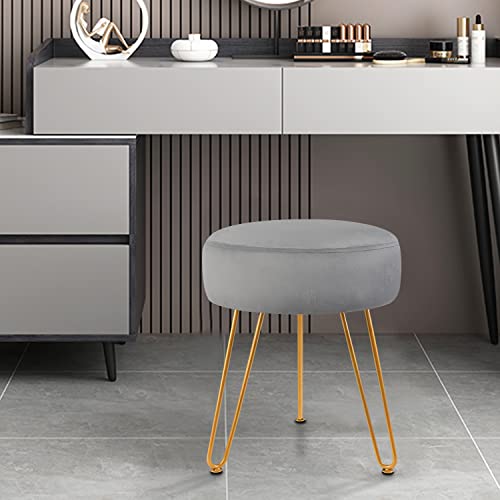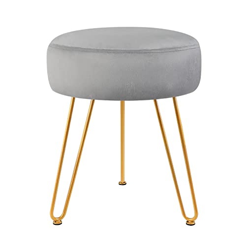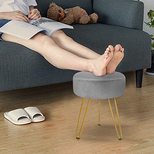 - ★★BEAUTIFUL APPREARANCE★★ Round velvet ottoman stool with 3 gold metal legs. Perfect for a living room, bedroom, family room, apartments, or study room.