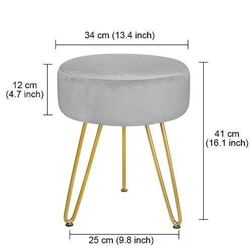 - ★★EASY TO ASSEMBLY★★ This velvet footstool is easy to aeeembly, disassembly, maintain. Seat height 40.8 CM, Seat diameter 34 CM, Cushion thickness 11.9 CM.