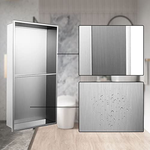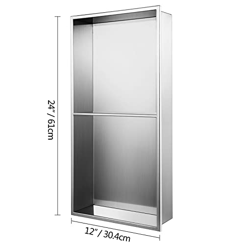 - Premium Material -This 24 inches x 12 inches shower niche insert is made of 304 stainless steel, anti-rust, anti-corrosion and waterproof. It not only has the beauty of industrial products, but also can bring you a comfortable mood.