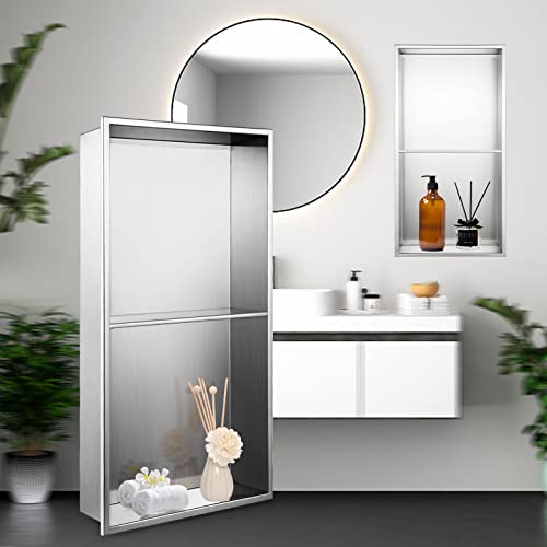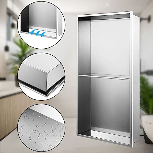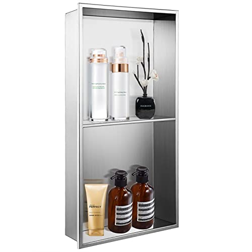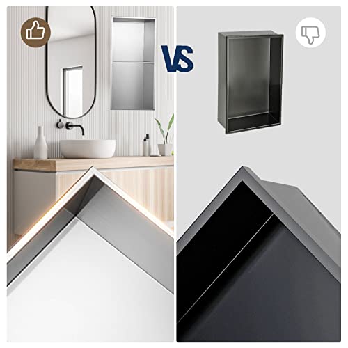 - Multi-purpose Scenarios -Stainless steel recessed shower niche no tile needed will facilitate your daily life and save time tidying up and cleaning up. Perfect storage for bathroom, kitchen, living room, ladies' room, toilet, coffee bar etc.