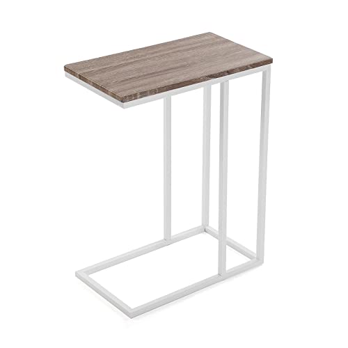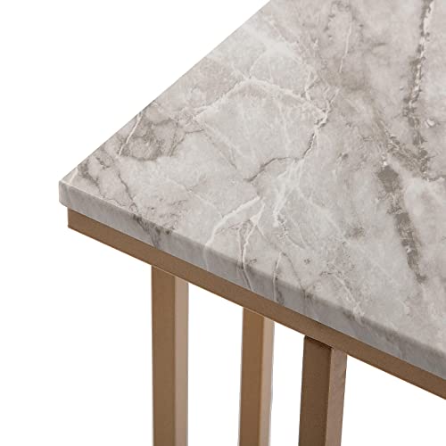 - FEATURES - The side table is the perfect size for the living room, bedroom or dining room. The table has a height of 61 cm, with a length (bottom) of 26 cm, and a width (side to side) of 46 cm. The weight is 5.6 kg and is made of chipboard (not real marble) and covered with melamine and metal. Colour: white marble countertop and gold legs.