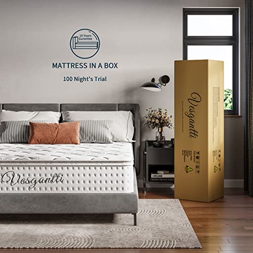 - 【Medium to Firm Mattress】- Designed with layers of CertiPUR-US certified foam and hundreds of individual pocket springs, Vesgantti mattress is soft enough to be comfortable yet firm enough to be supportive. An ultra-quiet hybrid mattress for side, back and stomach sleepers