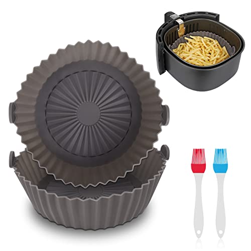- 🥙【Practical Design】The inner tank of the air liner is designed with a unique flower-shaped drainage channel to prevent the juice from sticking to the food; the inner tank of the silicone air fryer is designed with handles on both sides to protect your hands from burns when taking it out. The 1.5x heightened rim protects the sides of the fryer and prevents food from sticking to it.