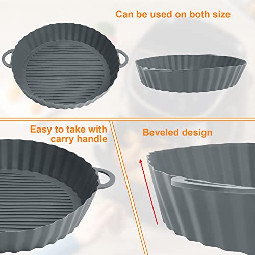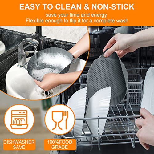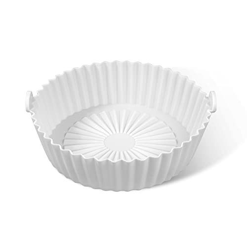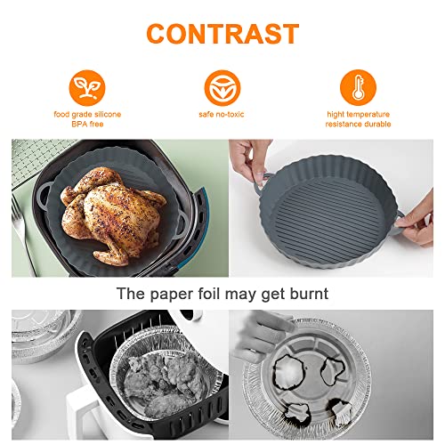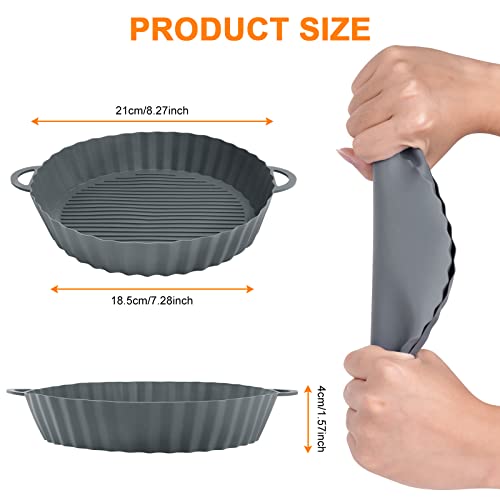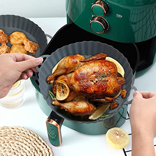 - 🍟【Food Grade Silicone】: The air fryer silicone pot is made of reusable safe food grade silicone and high quality materials, BPA free, non-toxic, non-stick, high temperature resistant, our air fryer accessories will not affect the food The taste ensures the original taste of the food itself. Size: 21*18.5*4cm(8.27 inch)