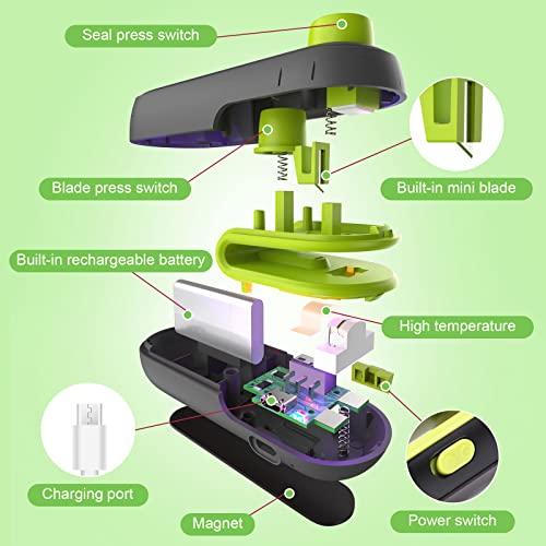 - 🎁【Portable and Small】Mini portable bag sealer is small in size, you can use it to seal snacks or fruit bags. With built-in magnets, it can also stick to any metal surface for easy storage. Suitable for all kinds of plastic bags, such as aluminum foil heat sealing bags, plastic snack bags, vacuum food preservation bags, food packaging bags, PVC bags.