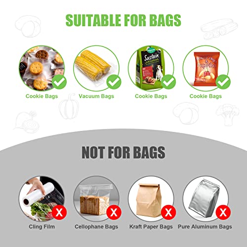 - 🎁【Keep Food Fresh】The heat sealer can keep your food and snacks fresh longer, reduce food waste, effectively seal and block dust in the air, and make your family healthier. The food bag sealer keeps chips, snacks and food fresh and crispy and reduces food waste.