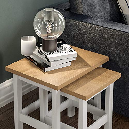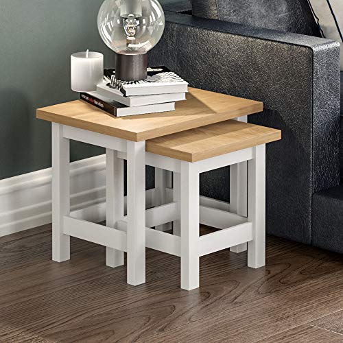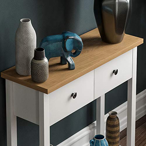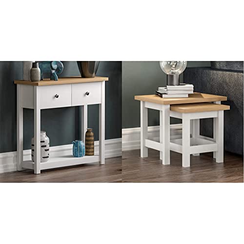 From the manufacturer Vida Designs Arlington 2 Drawer Console Table, White Vida Designs offers this stunning new product with a modern stylish design, the Arlington 2 Drawer Console Table, White. This console table would be a smart addition to the bedroom, lounge, hallway or dining room with its great décor as well as storage. The chic combination of the mid-tone white with the contrasting oak effect table top will transform any room from a traditional setting to modern. With a slick compact design, this console table has the ability to fit into smaller areas making it very versatile. Product Measurements: H 74 x W 80 x D 30 Cm Approx. Please note that this item is delivered flat-packed for home self-assembly. Sturdy Construction Elegant Design Available in 2 Colours 2 Spacious Drawer Melamine Veneer Top Lower Shelf Ideal For Small Spaces Easy Home Assembly Vida Designs Arlington console table is perfect for hallways, reception areas and lounges, where extra space is always handy, but bulky furniture is not always an option. Designed with todays modern living in mind, this console table features a sturdy top surface, two drawers and a lower shelf. This console table can be used for a wide range of occasions and purposes, whilst complimenting most décor and themes. particle board, MDF & melamine veneer top, the console displays the patterns and colours of light oak top, whilst remaining protected from spills and light knocks, for a durable piece which will last for years. The sturdy lowers shelf adds a variety of storage options, as it is suitable for holding shoes, bags or small electronic items such as a printer or shredder. Alternatively, it may be used for showcasing plants or ornaments. Whilst the drawers offer more options for storing small items, such as personal belongings, keys and notepads. Vida Designs Arlington Nest Of Tables, White Vida Designs offers this stunning new product with a modern stylish design, the Arlington Nest of Tables, White. These nest of tables would be the perfect choice for any fashion conscious home owner. The chic combination of the mid-tone white with the contrasting oak effect table top will transform any living room from a traditional setting to modern. This attractive set of two tables skilfully combines a stylish and modern design with space saving convenience. When the set of tables are aligned together they form a small compact unit, helping to reduce the floor space required. Product Measurements: Large Table: H 43 x W 50 x D 40 Cm ApproxSmall Table: H 40 x W 39 x D 36 Cm Approx.. Please note that this item is delivered flat-packed for home self-assembly. Key Features Compact Design Available in 2 Colours Two Tone Colours Oak Veneer Top Sturdy Construction Beautifully Crafted Easy Home Assembly This nest of tables can be used as a display surface for decorative pieces such as photographs and ornaments or more practical items such as a lamp. Top quality MDF materials with Oak veneer top, contemporary and stylish design enhance the look of every living room. This Nest of Tables both saves space and gives you spare table space whenever you need it, 2 different sizes to neatly store within each other. They will save room and can simply be pulled out for whenever you need to entertain guests with drinks and snacks etc. This nest of table can be used in bedroom as a night stand, office as a small side table, living room as classy end tables, small corner table, reachable lamp tables or even as ornamental display tables. The contemporary and stylish design will enhance the look of every living room.