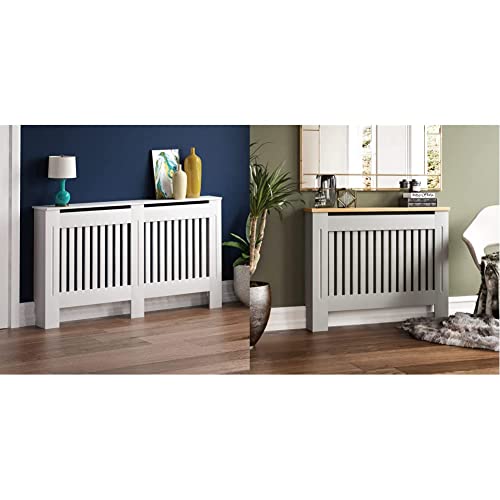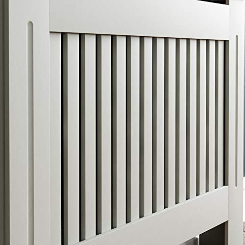 From the manufacturer Four Sizes Available! Small Product Measurements: H 82 x W 78 x D 19 Cm Crafted white finishGreat decorationIncludes wall mounting bracketsRequires self assembly Medium Product Measurements: H 82 x W 111 x D 19 Cm Wood top shelfTraditional vertical slat grill patternIncludes wall mounting bracketsRequires self assembly Large Product Measurements: H 82 x W 152 x D 19 Cm Modern grill designUseful shelf on the topIncludes wall mounting bracketsRequires self assembly Extra Large Product Measurements: H 82 x W 172 x D 19 Cm StylishGreat air circulationIncludes wall mounting bracketsRequires self assembly Front This radiator cover has a beautifully crafted white finish with a wood top shelf. Perfect for covering your radiator and giving your room a new , fresh look. Top With rounded edges, this cover features a very useful shelf on the top, perfect for flowers, pictures , candles and many more. This will make your room very cosy. Pattern Not only is this product perfect for covering your radiator, but it looks superb with its traditional vertical slat grill pattern design. Bottom This radiator cover is made in a way so that it fits perfectly with your skirting board meaning it will be lined up with your wall, making it look nice and neat. Four Sizes Available Small Internal Measurements: H 81cm x W 71cm x D 16cm Medium Internal Measurements: H 81cm x W 105cm x D 16cm Large Internal Measurements: H 81cm x W 145cm x D 16cm Extra Large Internal Measurements: H 81cm x W 165cm x D 16cm