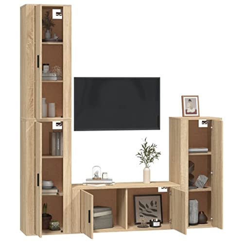 vidaXL TV Cabinet Set 4 Piece, TV Stand for Living Room, Sideboard with Storage, Media Unit Cupboard, Modern Style, Sonoma Oak Engineered Wood