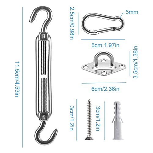 - High Quality: Shade sail fixing kit is made of high quality 304 stainless steel, anti-rust and anti-corrosion, heavy duty and durable, can better withstand severe weather, robust and safer