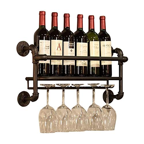 Vintage Wine Bottle Holder Industrial Wrought iron Wine Racks Wall Mounted Rustic Wine Glass Goblet Storage Organizer Rack