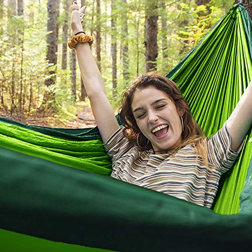 - [Maximum support 300 kg] This hammock is suitable for 1-2 people. You can sleep with friends or loved ones, but there is still enough room. Thanks to the new 210T nylon parachute, the Vivibel hammock can easily support a weight of 300 kg. Therefore, you can enjoy pleasant and relaxing moments in nature with your partner.