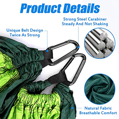 - [Precision technology and tree protection] Made of 210T three-point parachute nylon and special ultra-durable nylon belt. Its breaking strength is twice that of most competitors, enough to accommodate more than two adults! It also has a larger size (275 x 140 cm). The wide belt makes it more stable and firm, will not slip on the ground and can protect trees from damage.