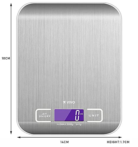 Vivo© Digital LCD Electronic Kitchen Household Weighing Food Cooking Scales 5KG Steel