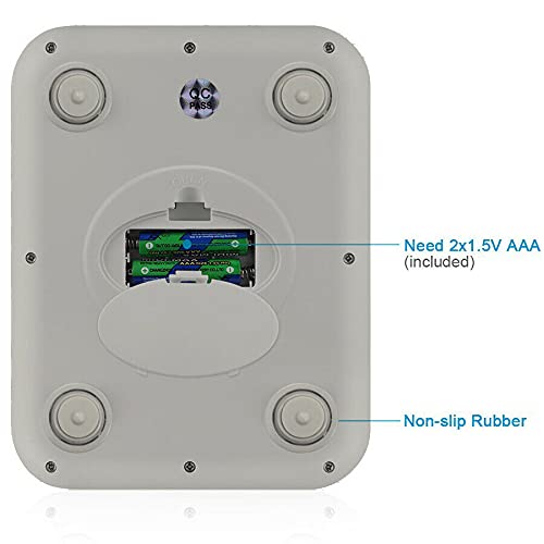 • Digital display with low battery indicator. Requires 2x AAA batteries (included).