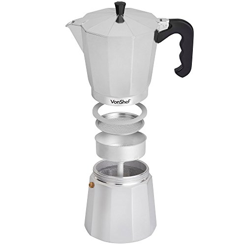 - AUTHENTIC: Bring a taste of Italy to your kitchen with the VonShef stovetop coffee maker, perfect for early morning wakeups or mid-afternoon pick-me-ups with its intense full-bodied brews.