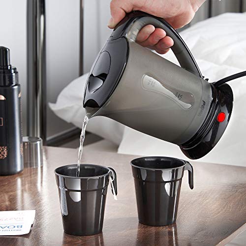 - 2 CUPS INCLUDED: Out of clean cups? There’s no need to face the washing up thanks to the included cups; the mini kettle’s 0.5L capacity provides the perfect amount for you and a loved one to put your feet up and sip up!