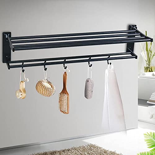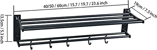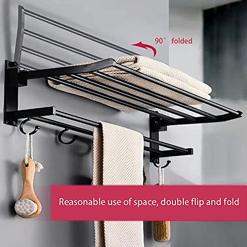 - Product Category--Bathroom Towel Rack;Material--Space Aluminum;Surface Treatment--Black Paint;Installation Method--Nail-Free Installation;Specifications--Double Layer,With Hooks,Foldable,With Storage Platform;Length--40/50/60Cm/ 15.7/19.7/23.6 Inches