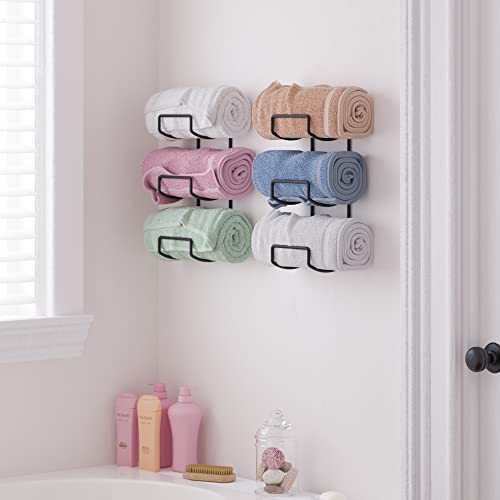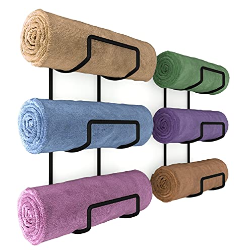 - Stylish and Functional Design: With 4.6" width of this sleek black metal rack set, you can store and display your colorful bath towels, hand towels, face towels, bath sheets, beach towels, gym towels and even washcloths, small blankets. This will upgrade your bathroom decor while creating extra storage space in your bathroom shelves