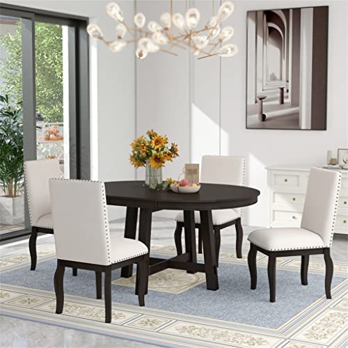 - With a round table top and special curved legs, this five-piece dining table brings an atmosphere of and sophistication.