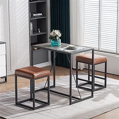 • 1. 【3 PIECE DINING TABLE SET】: Rustic dining table set with two stools and a narrow kitchen table. bar and pub table set perfect for small spaces