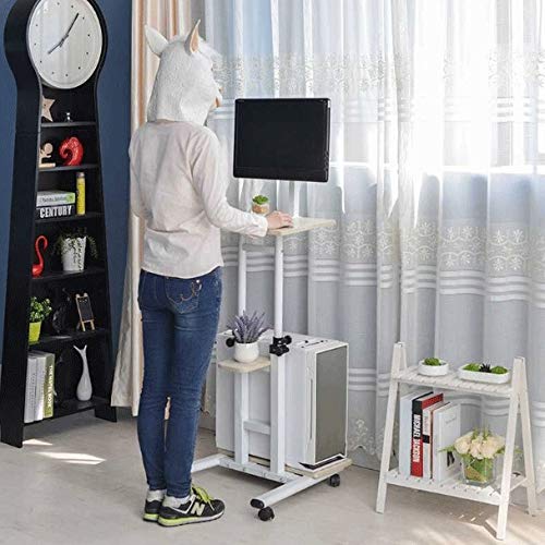 HomeHome Office Furniture WALNUT Height Adjustable Sit Stand Workstation, Mobile Standing Desk, Rolling Presentation Cart, Stand Up Computer Desk with Dual Surface for Hom