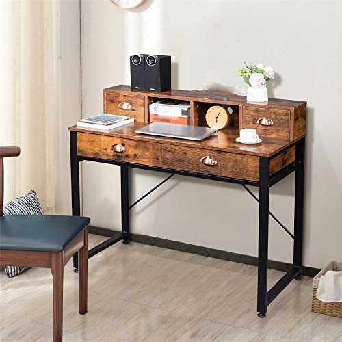 WALNUT Work Study Desk With Storage Drawer Rack For Living Room Home And Office Computer Desk Work (Color : A)