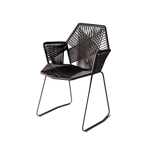 WALNUT Woven Single Chair Modern Minimalist Home Balcony Outdoor Patio Table and Chair Rattan Chair Metal Backrest Dining Chair (Color : A)