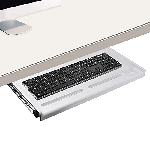 - 2.ERGONOMIC TYPING : This keyboard tray comes with an ergonomic, versatile design which is easy to install requiring no tools, nor your time and energy! extra wide work surface will make sure your typing is comfortable and efficient. It helps to reduce the effect of your shoulders feeling cramped and your wrist sore.