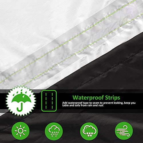 - 💧 Excellent Waterproof: The garden furniture cover adopts upgraded waterproof material. Even the water pressure reaches 5000pa,still keep 100% waterproof. Add waterproof tape to the seams to prevent leaks. All-round protection of your furniture.