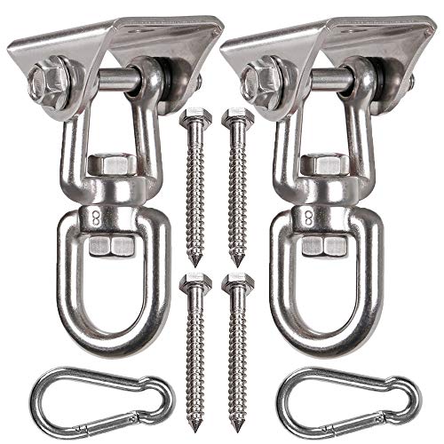 WAREMAID 2 Pack Heavy Duty 360° Swivel Swing Hanger, Stainless Steel Swing Hook for Ceiling Wooden Swing Set Bracket, Punching Bag Hanger for Pla