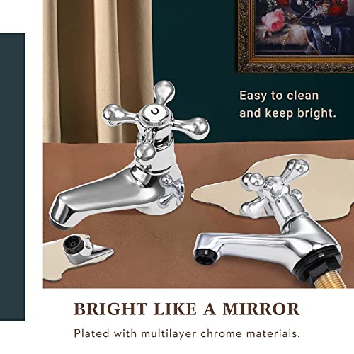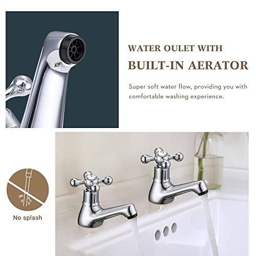 Product Description * Victorian Style --- Traditional Basin Pillar Taps Pair * * Vintage Cross Head Handles * * A-class Brass & Bright Silver Surface* The mono cloakroom taps are plated with multilayer sturdy materials like chromium, which makes the bathroom sink taps pair more durable and shiny. So it will not be faded even after a long time. _________________________________________________ * Easy to Install --- DIY * The washroom sink faucets are deck mounted. You just need to screw the washers to make the basin mixer taps fix. You can install this pair of taps by yourself within 20 minutes and save money for hiring a plumber. _________________________________________________ * Why Choose Wasserrhythm? * A Fun-maker We promise that you will enjoy your reflexing bathroom time. An Innovator We will try our best to let you experience a different range of bathroom. A Listener High quality and best experience are always what we are chasing for. Enjoy The Rhythm of Water!