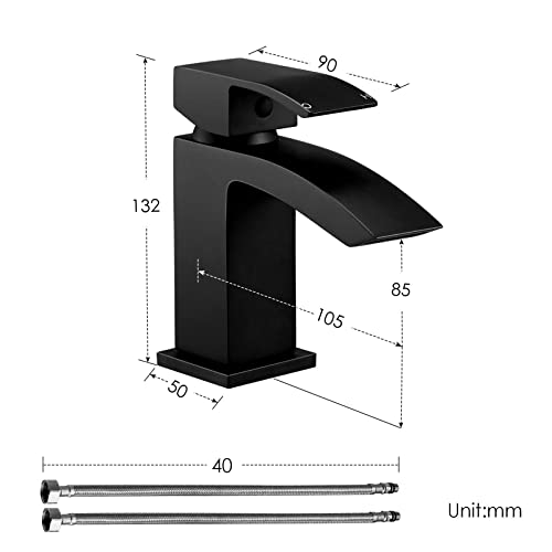 Product Description Advanced Black PVD Paint We adopted the advanced PVD paint to produce this batnroom mixer tap, which is the highest standard of taps production. It will not be outdated or faded even after a long time. The surface of this mono basin tap has the premium frosted texture, effective to avoid peeling or remaining fingerprint. __________________________________________ Smooth Flat Single Lever The washroom sink mixer faucet is built-in an advanced ceramic disc cartridge. The single flat handle conforms to ergonomic, creating beautiful lines and premium texture. It is easier and more convenient to control water temperature and water volume. ______________________________________ Application Condition For this tap to operate, your water system will need to produce at least 0.5 bar pressure, and we recommend 1 bar for optimal performance. This can be achieved if you have any one of the following systems: Combination Boiler SystemGravity Fed System (only with a pump)Mega-flow SystemPumped Hot Water System NOTE: The slotted pop-up basin waste is only suitable for the bathroom sink with overflow. Please kindly check whether your sink has an overflow hole. ______________________________________ More Details About The Black Wash Basin Tap Material Lead-free Copper Shape Rectangular & Flat Spout Waterfall Spout Height 85mm Spout Reach 105mm Specification of Hoses 400mm; G1/2'' Connector (UK Standard) Thread of Sink Waste G1 1/4 BSPP (UK Standard) Diameter of Waste Bottom 40.6mm Bounce Height of Waste 87mm Is The Waste Slotted? Yes