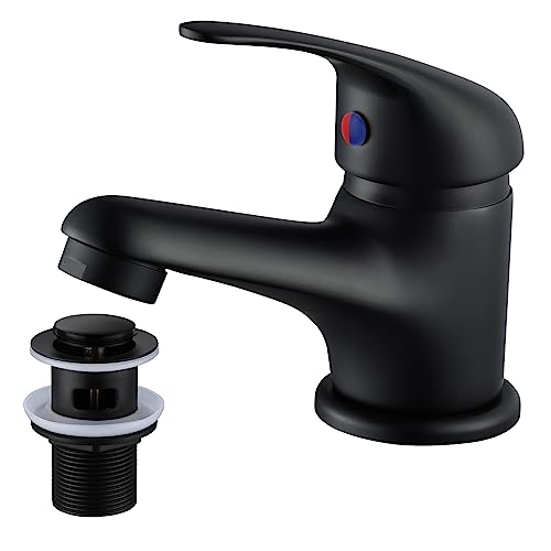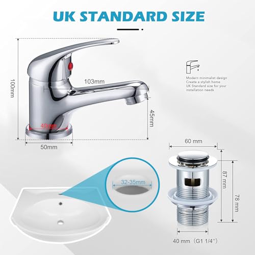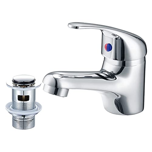 Home DIY & Tools WasserRhythm Bathroom Sink Taps with Pop up Waste Mono Basin Taps Single Lever Chrome Hot and Cold Mixer Tap