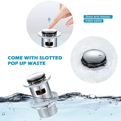WasserRhythm Bathroom Sink Taps with Pop up Waste Mono Basin Taps Single Lever Chrome Hot and Cold Mixer Tap