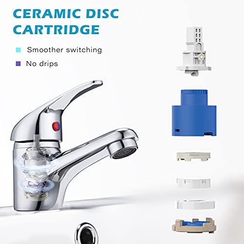 • [DURABLE CERAMIC CARTIDGE] The bathroom mixer tap has a built-in 1/4 turn ceramic disc cartridge which has passed 300,000 switch tests to keep the handle smooth and long-lasting operation, also no leaking