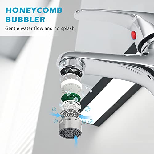 • [WATER-SAVING TAP AERATOR] The water outlet adopts a honeycomb aerator. The water is filtered through multiple layers, and the aerator introduces air into the water flow to form bubbles, which makes the water flows out more softly without splashing, and wash more things with less water