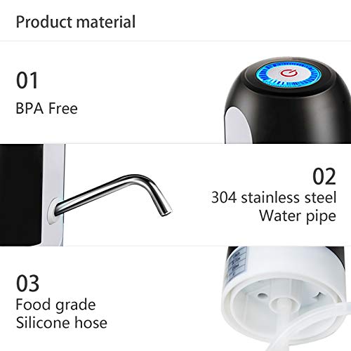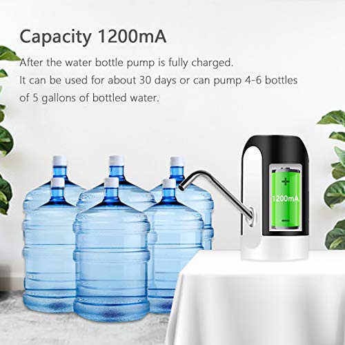- ✅ Battery capacity. Built-in a 1200mA lithium ion battery, it takes 4 hours to fully charge. After the water bottle pump is fully charged, it can be used for 30 days or can pump 4-6 bottles of 5 gallons of bottled water,Please charge before use
