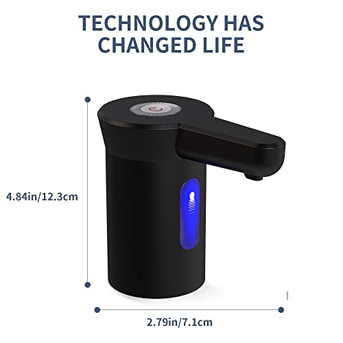 - 【High Compatibility】This water bottle pump is suitable for many types of gallon bottles. Bottle Capacity: 2 to 7 gallons. NOTE: This automatic pump is suitable for 2.16" (5.5 cm) diameter gallon bottles with caps (the cap needs a small hole at the top for the hose to be inserted). Hose Length: 20.86 inches (53 cm)