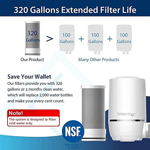 - Highly adsorptive material: Highly adsorptive Activated Carbon Fiber (ACF) for efficient contaminants reduction and fast adsorption speed. Each filter delivers 3 months or 320 gallons of clean and fresh water, 2x longer than many other products, helping save your wallet.